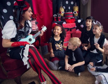 Children’s entertainers (that’s us) bring, lead, and clean-up activities while dressed up as themed characters. Check out the activities we bring.