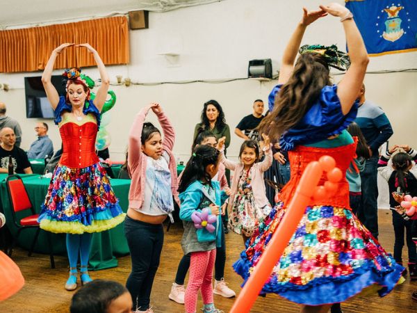 Older children love how we gamify the dancing into fast-paced freeze dance, and younger children love dancing with fun props (bubbles! silk scarves!).